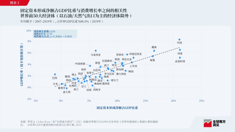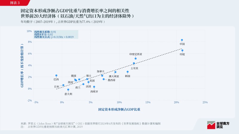 固定資本形成凈額占GDP比重與消費增長高度相關,且經濟規(guī)模越大相關性越強