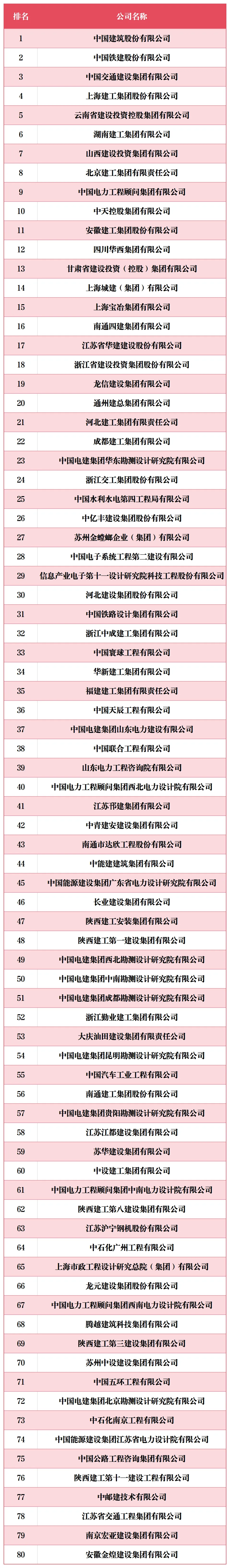 9月26日,美國(guó)《工程新聞?dòng)涗洝罚‥NR)和中國(guó)《建筑時(shí)報(bào)》共同發(fā)布2025年度“中國(guó)承包商80強(qiáng)和工程設(shè)計(jì)企業(yè)60強(qiáng)”排名。中國(guó)建筑股份有限公司等80家承包商、中國(guó)電力工程顧問集團(tuán)有限公司等60家工程設(shè)計(jì)企業(yè)入圍新一年度榜單。