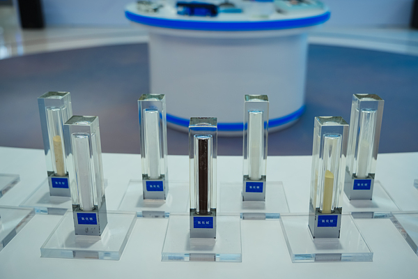 中國北方稀土(集團)高科技股份有限公司展出了各類稀土材料、稀土金屬和稀土氧化物等。 視覺中國